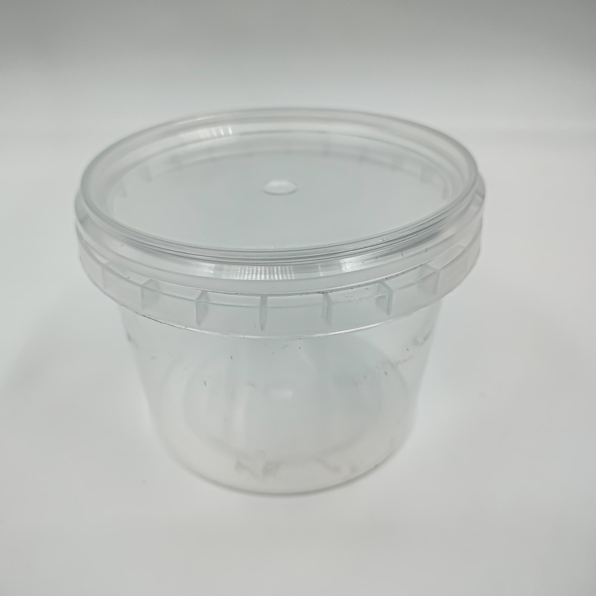 Пластиковая банка для пищевых продуктов объемом 330 мл. Крышка с контрольным замком герметично закрывает контейнер, в нем можно хранить и перевозить жидкие продукты. Контрольный замок гарантирует целостность упаковки, крышка легко открывается и закрывается. Подходит для упаковки сыров, пресервов, солений, икры, меда и других продуктов.