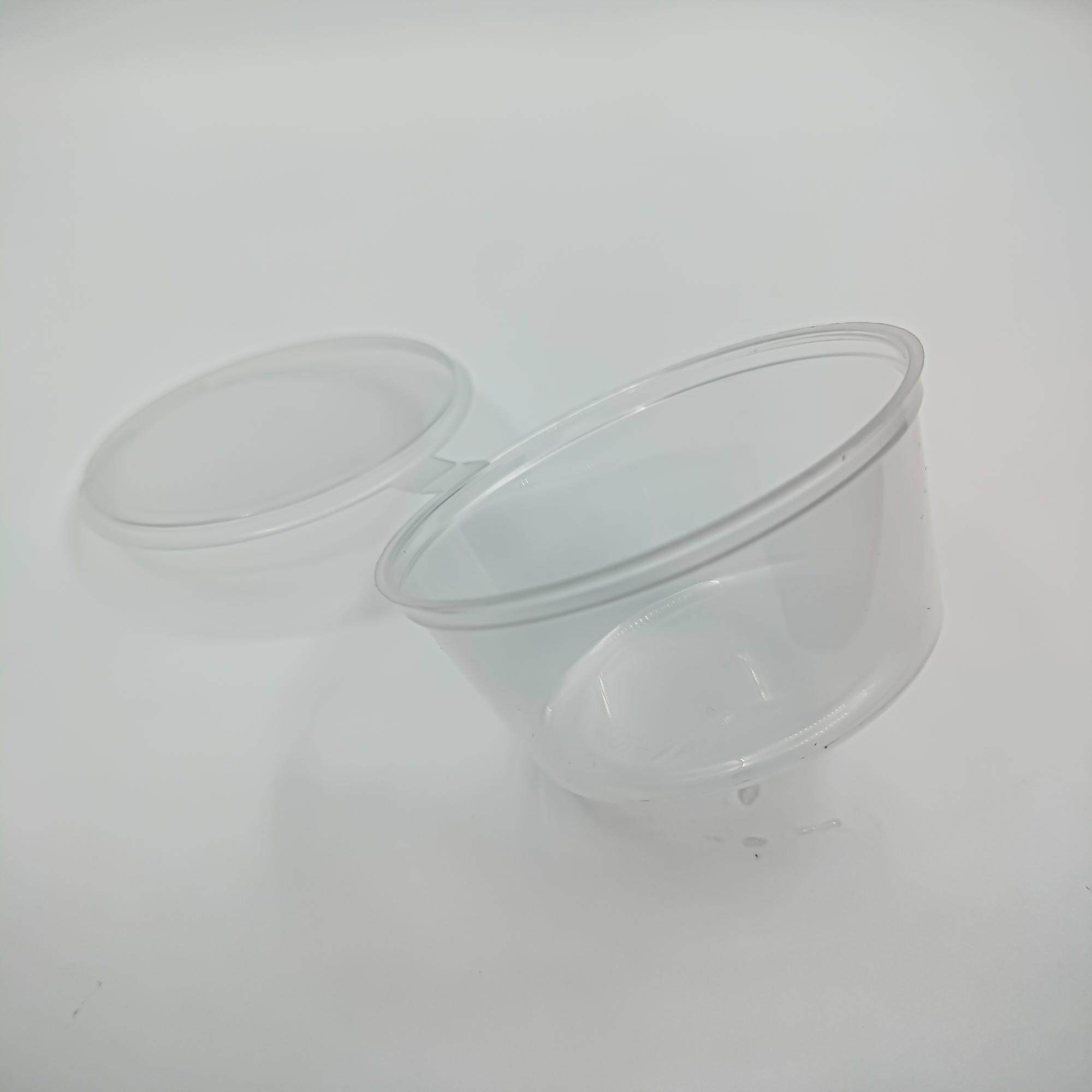 Круглый пластиковый контейнер с совмещенной крышкой объемом 50 мл. Соусник плотно закрывается, не течет и не деформируется. Отлично подходит для фасовки, упаковки и транспортировки соусов, меда, варенья, а также не пищевых мелочей.