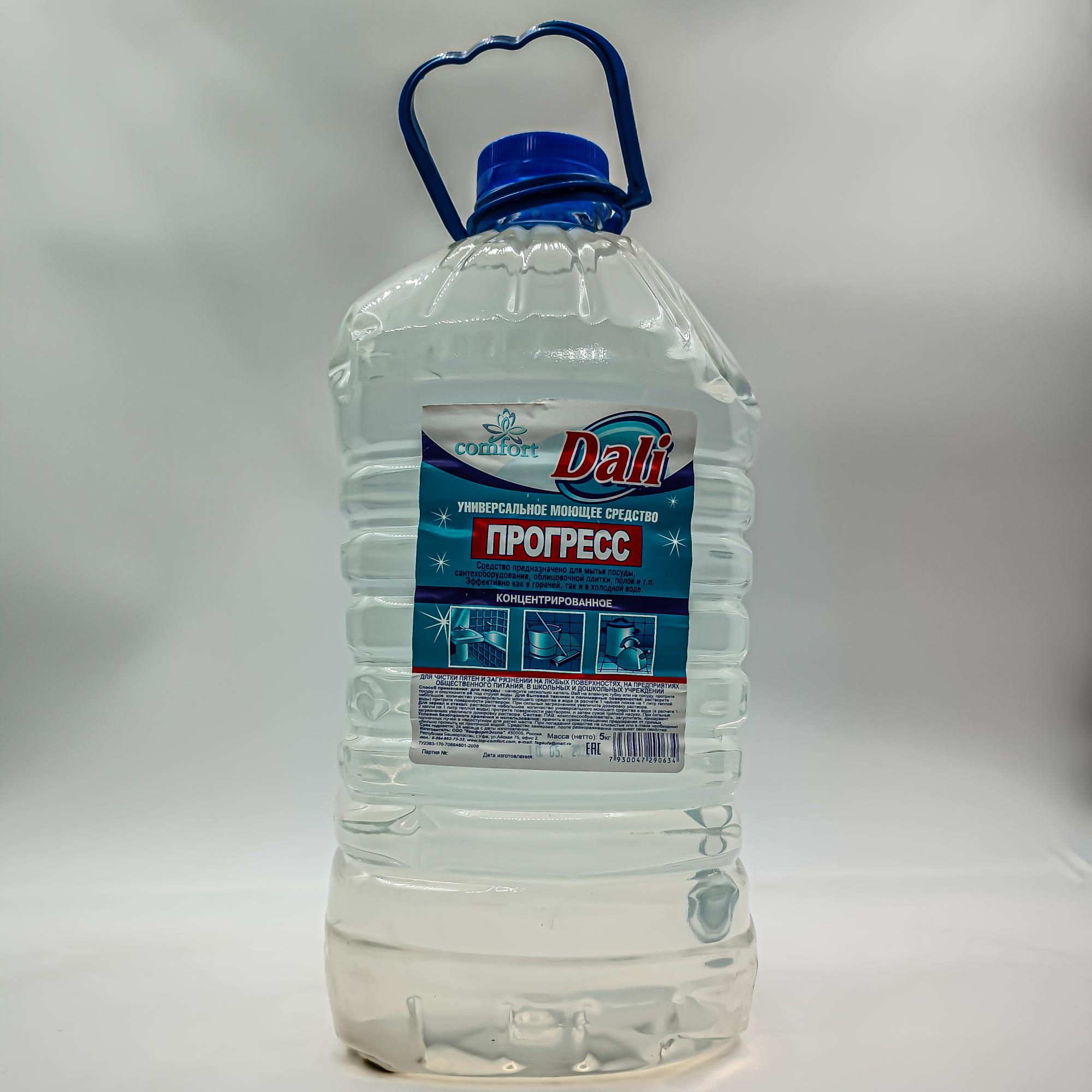 Универсальное средство "Прогресс" 5 л. Жидкость универсальная, предназначена для чистки и обезжиривания любых твердых влагостойких поверхностей: всех видов посуды и столовых принадлежностей, внутренних и внешних поверхностей бытового, кухонного и производственного оборудования, сантехнического оборудования, стен и полов.