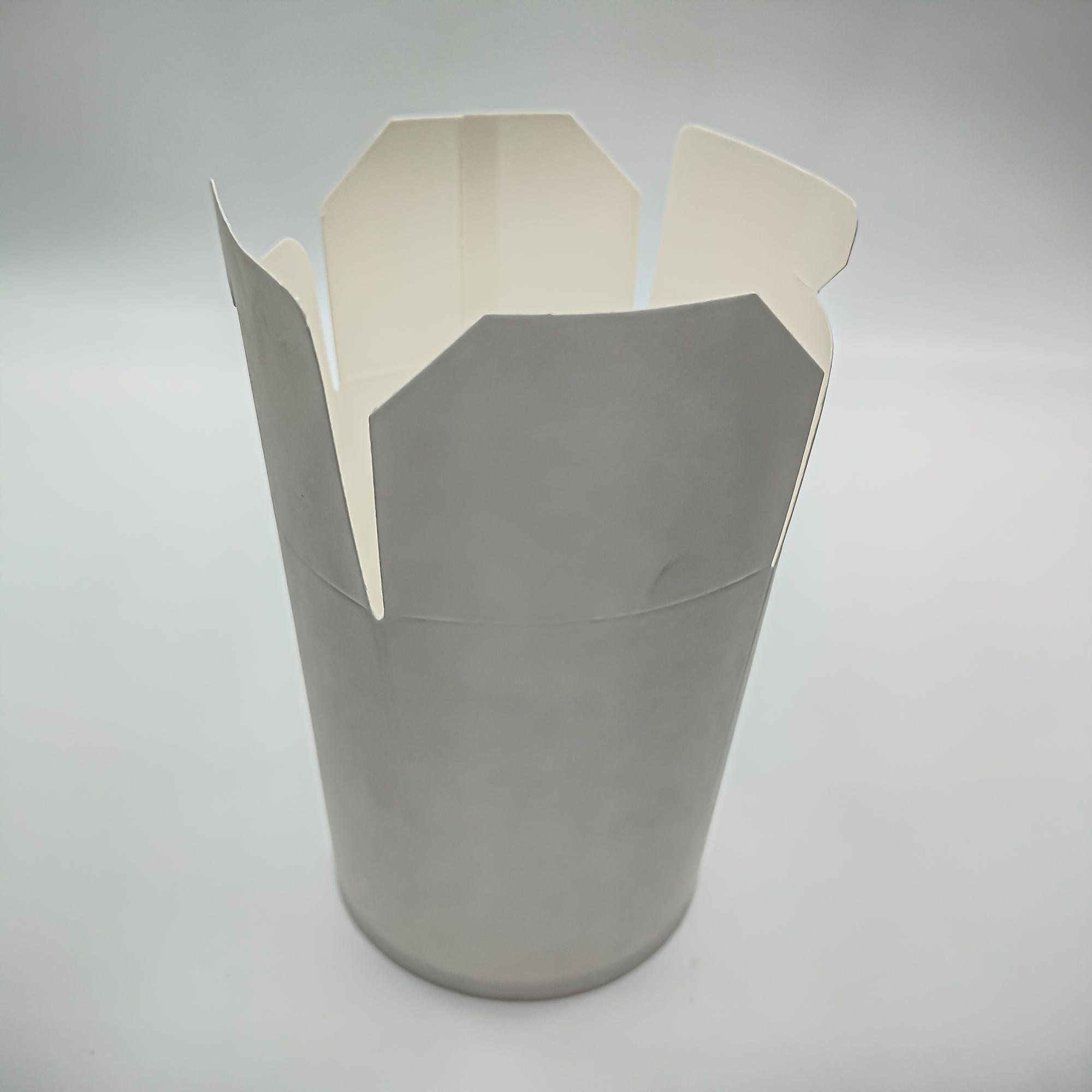 Контейнер бумажный белый сборный. Размеры коробки 130*95*75 мм, объем контейнера 500 мл. Стильная бумажная крафт упаковка с пластиковой крышкой влагоустойчивая внутри для горячей или холодной пищи подходит для блюд азиатской кухни: лапши, риса с добавками. В упаковке 35 штук
