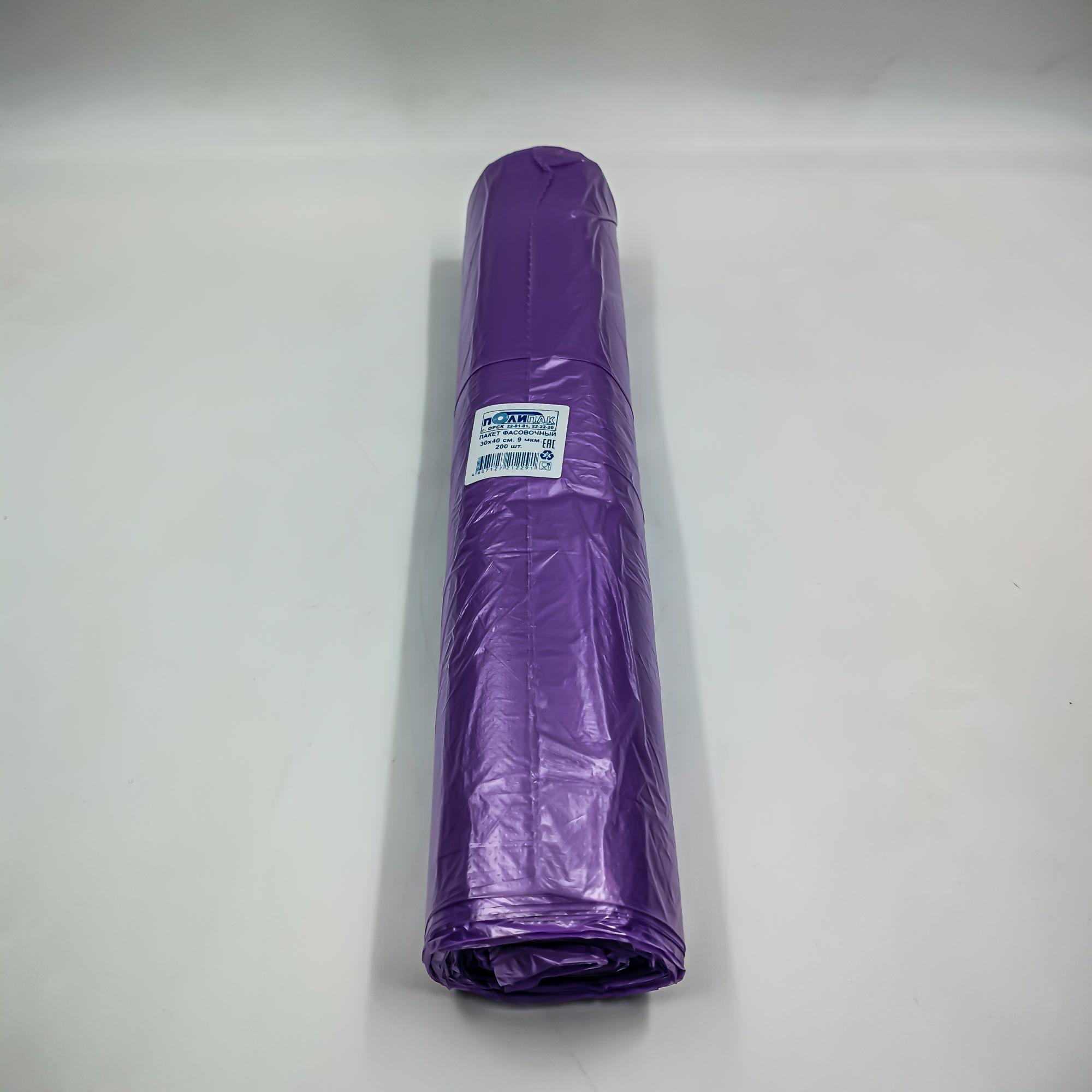 Фасовочные пакеты фиолетовые из ПНД 30*40 см толщиной 9 мкм. Пакеты безопасны в использовании, достаточно прочные для фасовки, хранения и перевозки пищевых и непищевых продуктов. Упаковка легко открывается, пакеты удобно достаются. В рулоне 200 пакетов