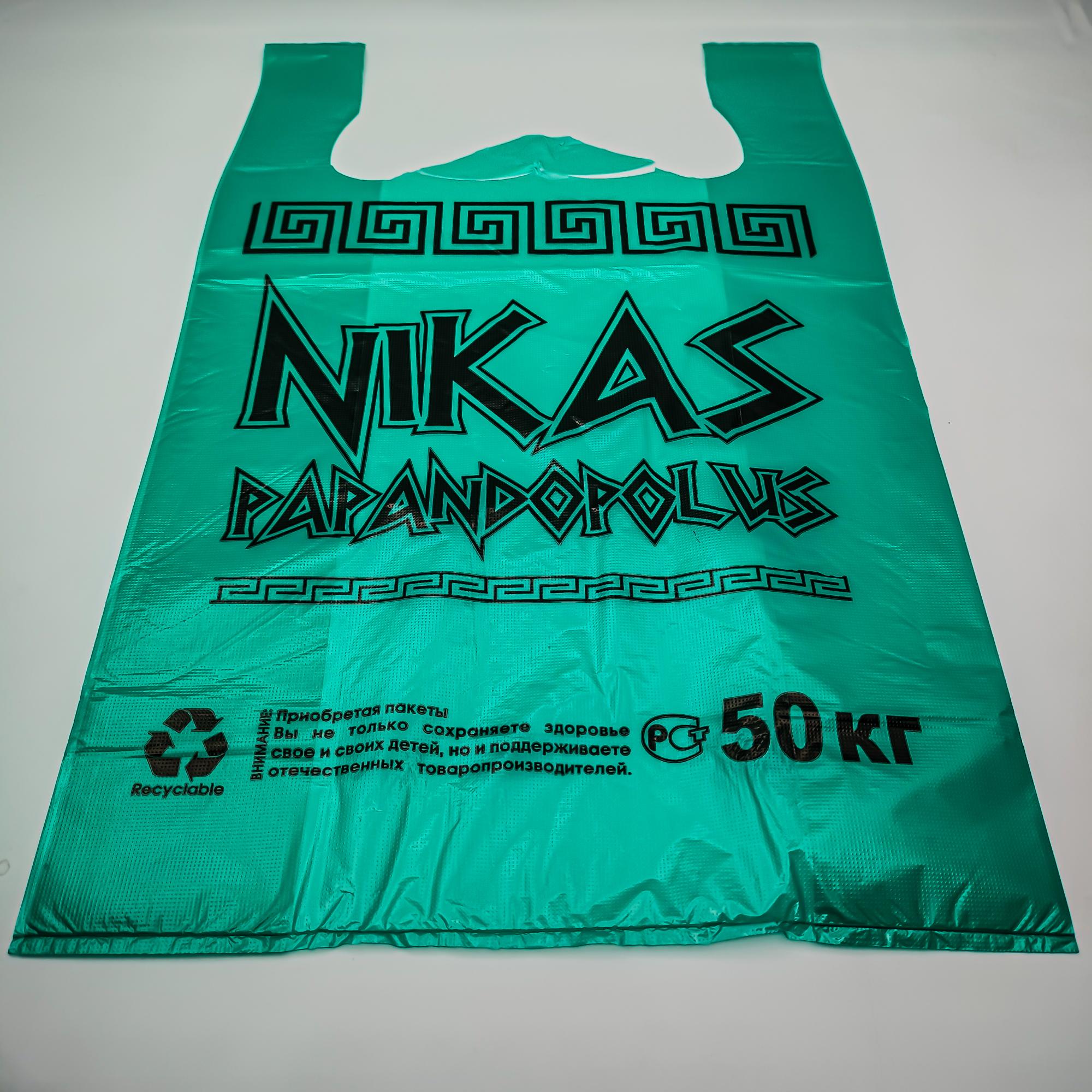 Майка "Никас", размеры 30*55, рассчитана на 50 кг, в упаковке 100 маек, возможны разные цвета майки. Майка выполнена из материала, безопасного для здоровья. Подходит для хранения и фасовки продуктов, непродовольственных товаров. Такие майки используются в быту, в торговле, на производстве. Пакет прочный на растяжение, подходит для многократного использования