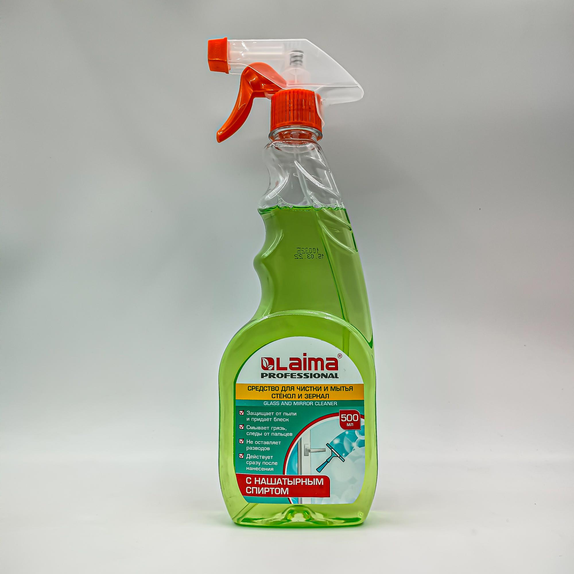 Средство для мытья стекол и зеркал с нашатырным спиртом Laima PROFESSIONAL 500 мл с распылителем. Эффективное средство для мытья оконных стекол, витрин, зеркал, автомобильных стекол, кафеля, хрусталя, фарфора, фаянса, экранов телевизоров и мониторов. Удаляет даже застаревшую грязь, пыль и жир.
