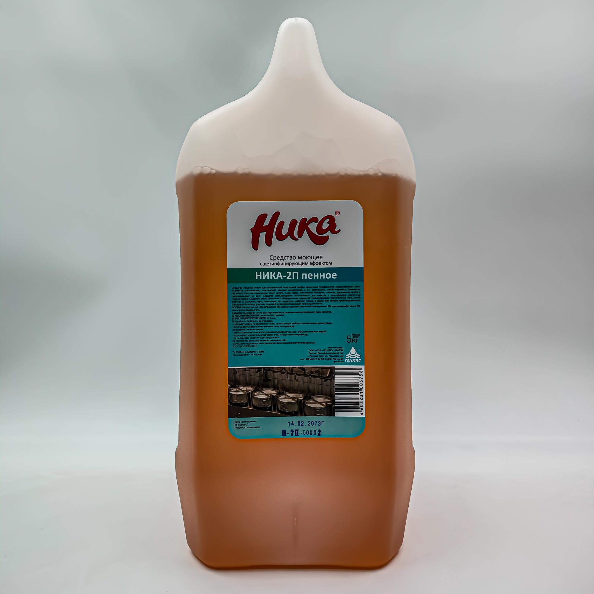 Средство моющее для пищевой промышленности Ника-2П пенное с дезинфицирующим эффектом 5 кг. Средство предназначено для дезинфекции и мытья оборудования, рабочих поверхностей, помещений, тары. Пенная технология обеспечивает качественную и экономичную очистку и дезинфекцию поверхностей даже в труднодоступных местах.