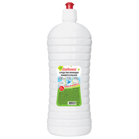 Средство моющее универсальное Любаша 1л. Предназначено для мытья и обезжиривания различных твердых поверхностей: посуды, поверхностей бытового и производственного оборудования, стен и полов. Возможно применение на поверхностях из линолеума, камня, металла, стекла, керамики, фаянса, ПВХ.