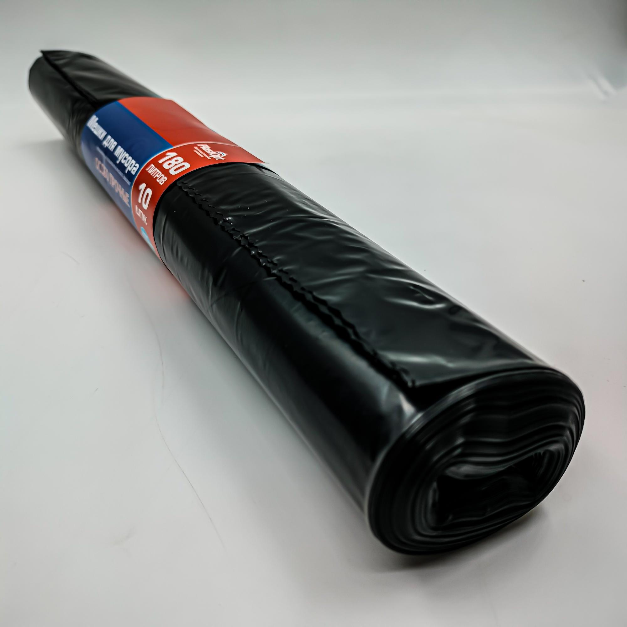 Мешки для мусора черные особопрочные на 180 л, 45-48 мкм из ПВД, в рулоне 10 мешков. Предназначены для хранения мусора и его последующей утилизации. Мешки надежные, соединены перфорацией. Подходят для уборки дома, на природе, субботников.