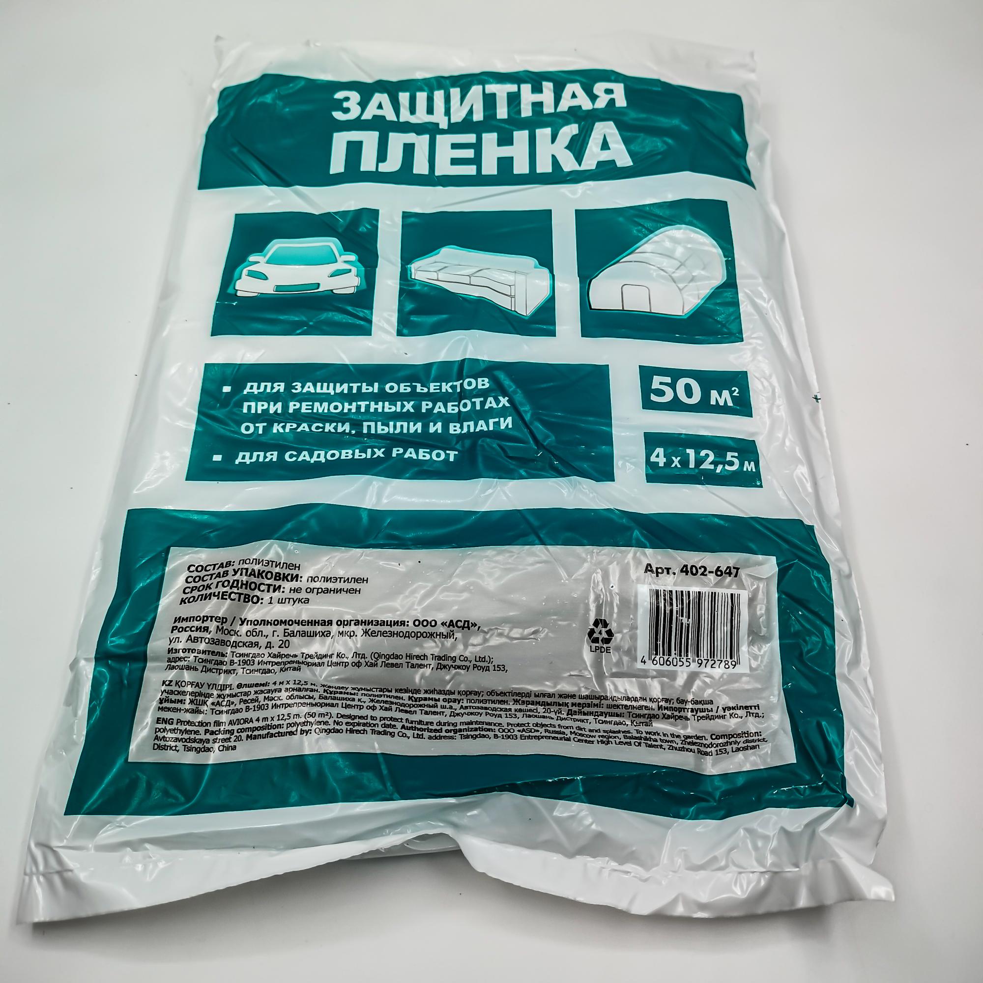 Укравной материал 4*12,5 м из полиэтилена. Пленка предназначена для защиты мебели при ремонтных работах, защиты объектов от влаги и брызг, а также для работ на садовых участках.