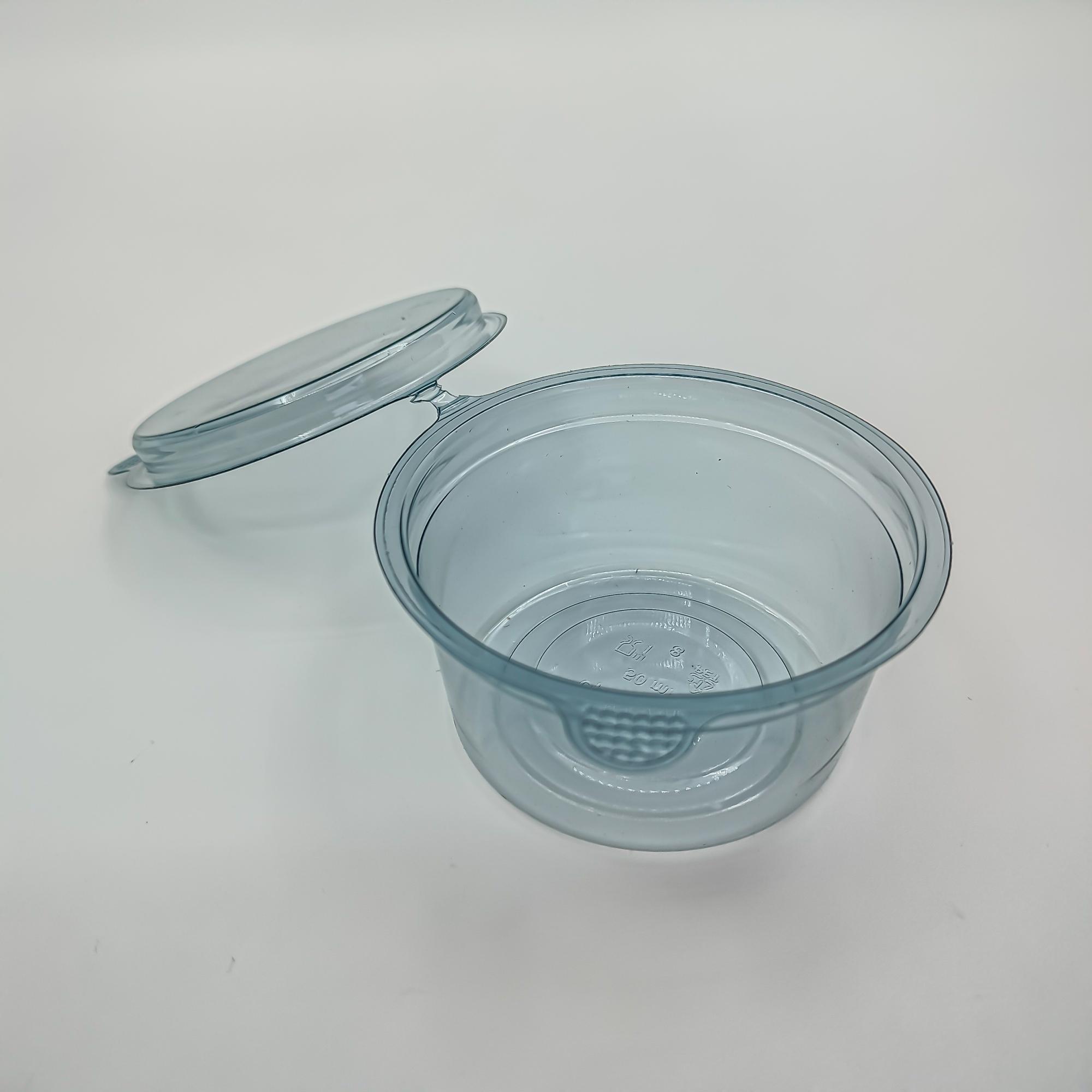Круглый пластиковый контейнер с совмещенной крышкой объемом 50 мл. Соусник плотно закрывается, не течет и не деформируется. Отлично подходит для фасовки, упаковки и транспортировки соусов, меда, варенья, а также не пищевых мелочей.