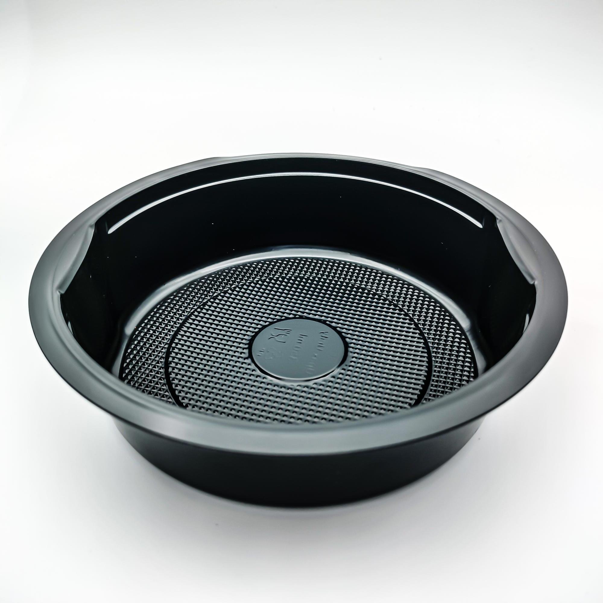 Круглые черные контейнеры ёмкостью 350 мл (диаметр верхней части 132 мм) являются универсальными для ручных и автоматизированных линий фасовки продукции,