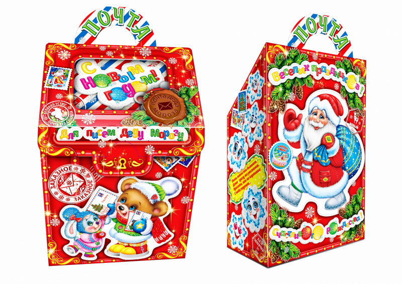 Коробка для новогоднего подарка с игрой "Почта Деда Мороза" на 1000 г., размеры 160*90*285 мм. Яркая и красочная упаковка для подарка, поставляется в разобранном виде, собирается быстро и легко.