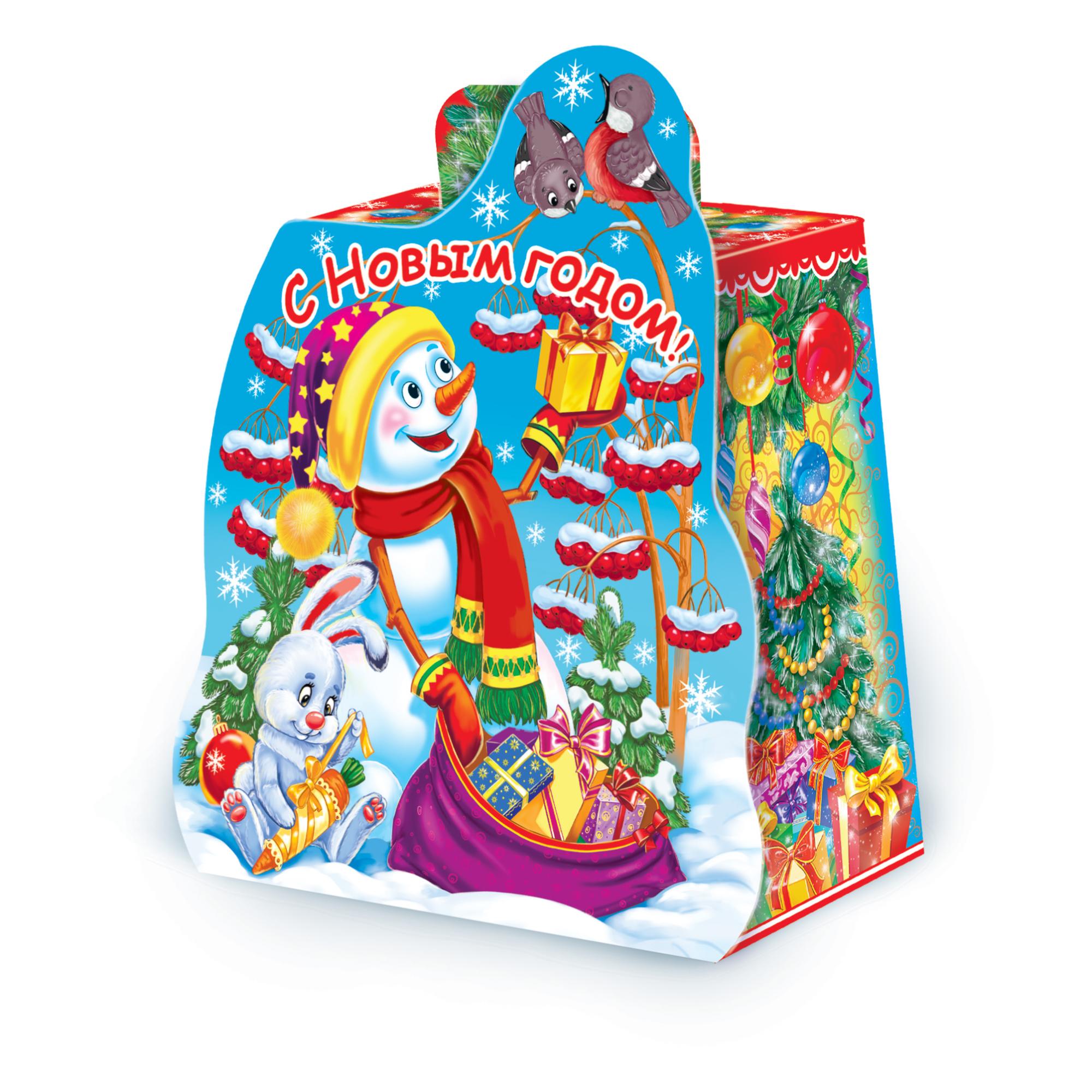 Коробка для новогоднего подарка "Снеговичок с подарком" на 800 г., размеры 110*110*235 мм. Яркая и красочная упаковка для подарка, поставляется в разобранном виде, собирается быстро и легко.