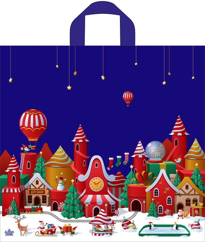 Пакет из ПВД "Волшебный городок" с петлевой ручкой, размеры: 420*440*0,07. Красочные потребительские пакеты с готовым дизайном пользуются спросом в различных сетевых магазинах и розничных точках продаж. Их вы можете встретить, как в магазине у дома, так и в крупном торговом центре, а также в дорогом бутике по продаже элитной мужской или женской одежды. В одной упаковке 50 пакетов