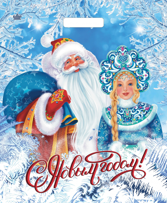 Пакет из ПВД "Дед мороз и Снегурочка" с вырубной ручкой, размеры: 450*380*0,06. Красочные потребительские пакеты с готовым дизайном пользуются спросом в различных сетевых магазинах и розничных точках продаж. Их вы можете встретить, как в магазине у дома, так и в крупном торговом центре, а также в дорогом бутике по продаже элитной мужской или женской одежды. В одной упаковке 50 пакетов