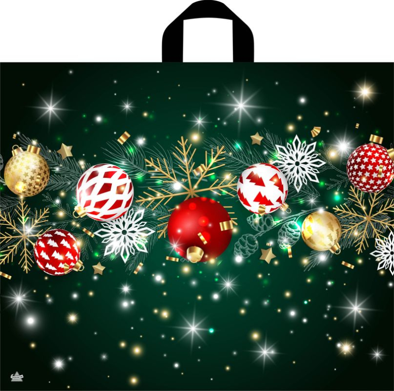 Пакет из ПВД "Новогоднее мерцание" с петлевой ручкой, размеры: 500*600*0,06. Красочные потребительские пакеты с готовым дизайном пользуются спросом в различных сетевых магазинах и розничных точках продаж. Их вы можете встретить, как в магазине у дома, так и в крупном торговом центре, а также в дорогом бутике по продаже элитной мужской или женской одежды. В одной упаковке 50 пакетов
