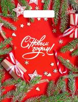 Пакет из ПВД "Цвет Нового года" с вырубной ручкой, размеры: 300*230*0,03. Красочные потребительские пакеты с готовым дизайном пользуются спросом в различных сетевых магазинах и розничных точках продаж. Их вы можете встретить, как в магазине у дома, так и в крупном торговом центре, а также в дорогом бутике по продаже элитной мужской или женской одежды. В одной упаковке 100 пакетов