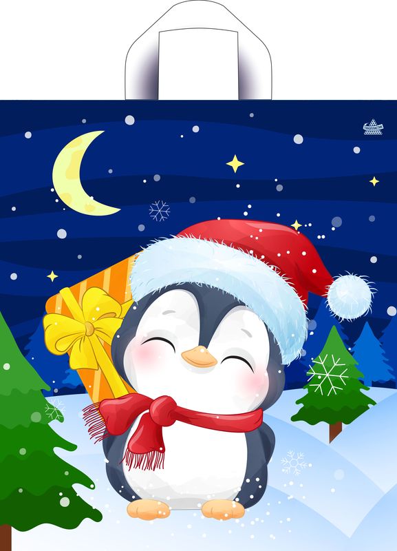 Пакет из ПНД "Сюрприз от пингвина" с петлевой ручкой, размеры: 420*380*0,037. Красочные потребительские пакеты с готовым дизайном пользуются спросом в различных сетевых магазинах и розничных точках продаж. Их вы можете встретить, как в магазине у дома, так и в крупном торговом центре, а также в дорогом бутике по продаже элитной мужской или женской одежды. В одной упаковке 50 пакетов