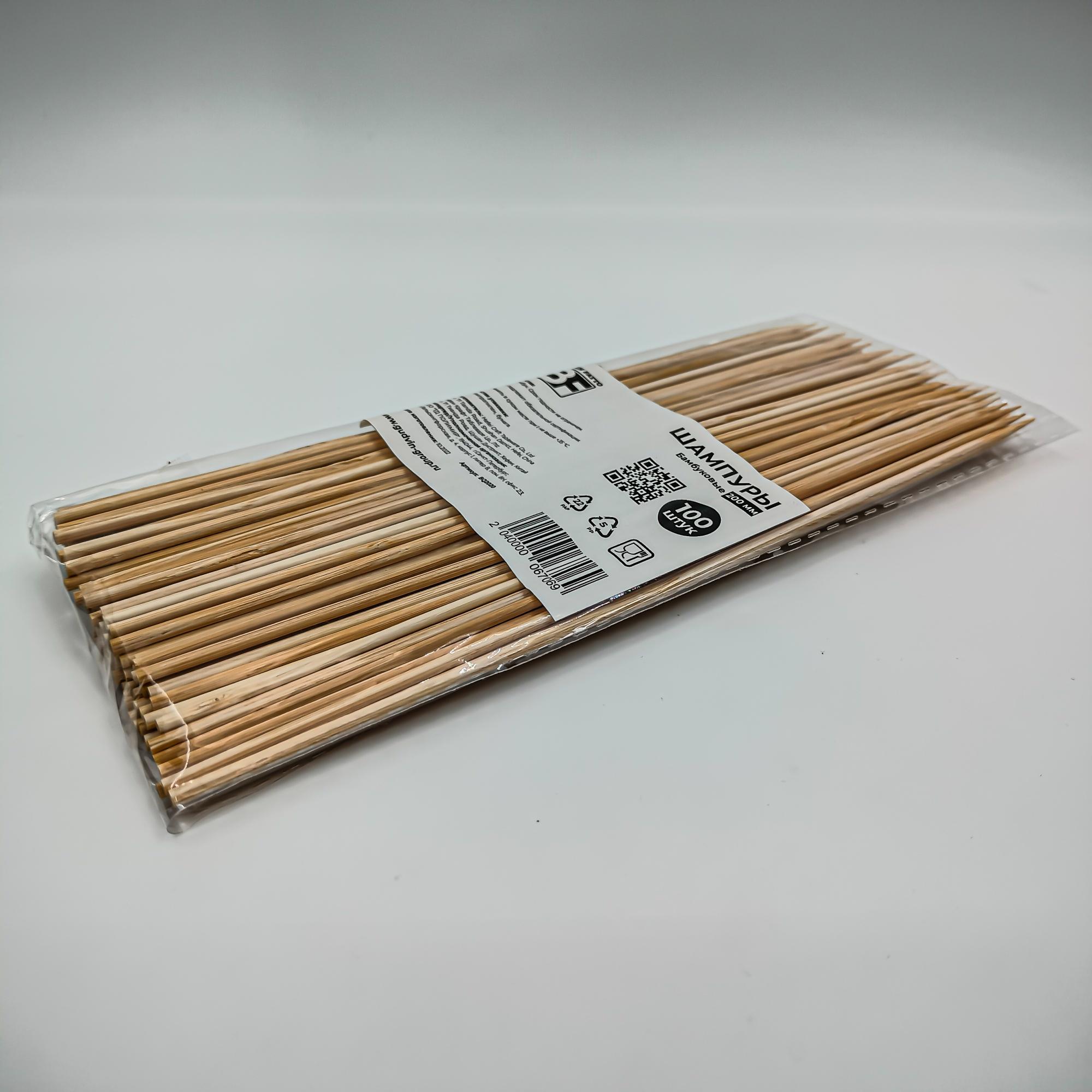 Шампуры деревянные одноразовые толщиной 2,5 мм и длиной 200 мм. Изготовлены из бамбука, безопасны при использовании, не выделяют вредных веществ, не влияют на вкус продуктов. Шампур представляет собой заостренную с одного конца палочку и имеет круглое сечение.