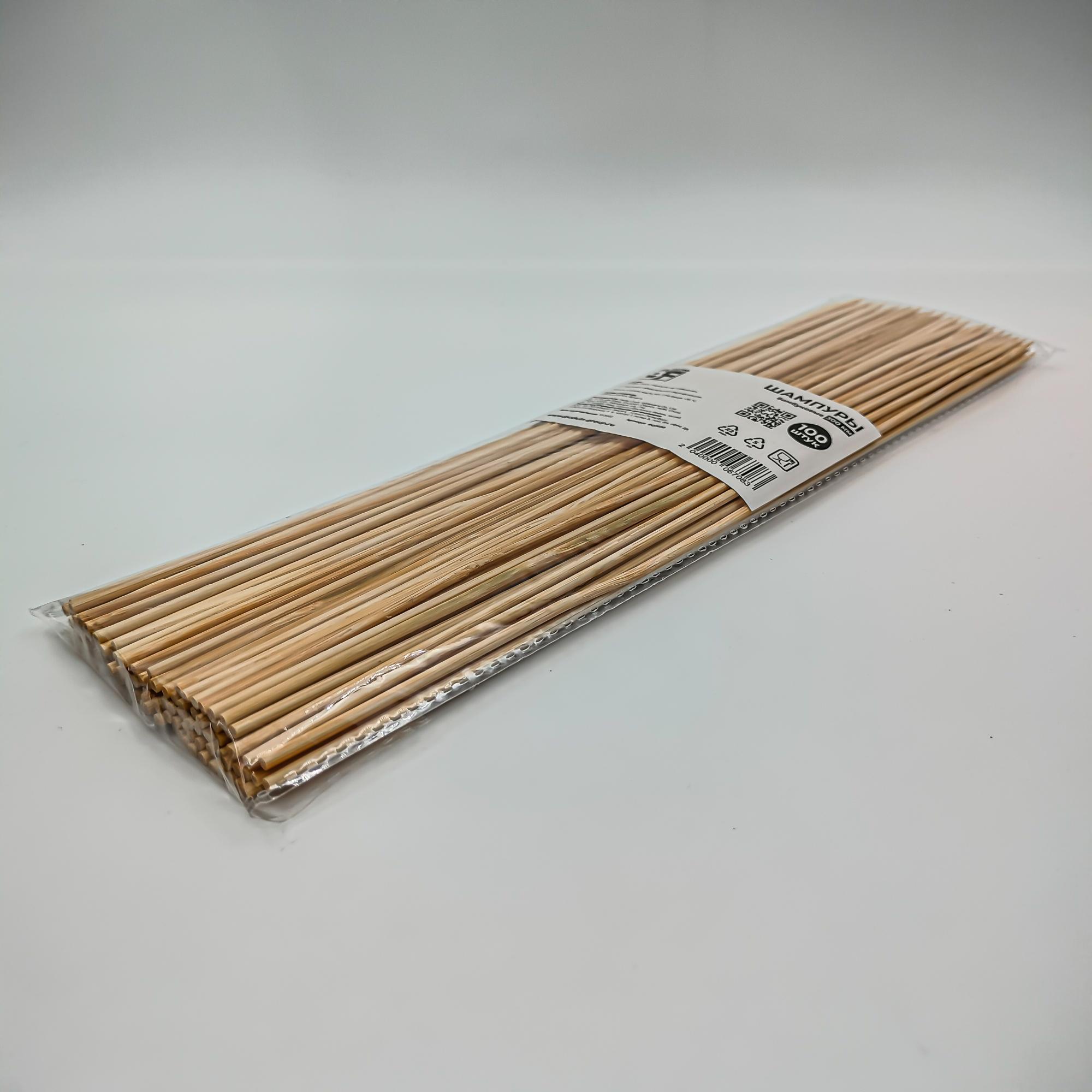 Шампуры деревянные одноразовые толщиной 2,5 мм и длиной 300 мм. Изготовлены из бамбука, безопасны при использовании, не выделяют вредных веществ, не влияют на вкус продуктов. Шампур представляет собой заостренную с одного конца палочку и имеет круглое сечение.