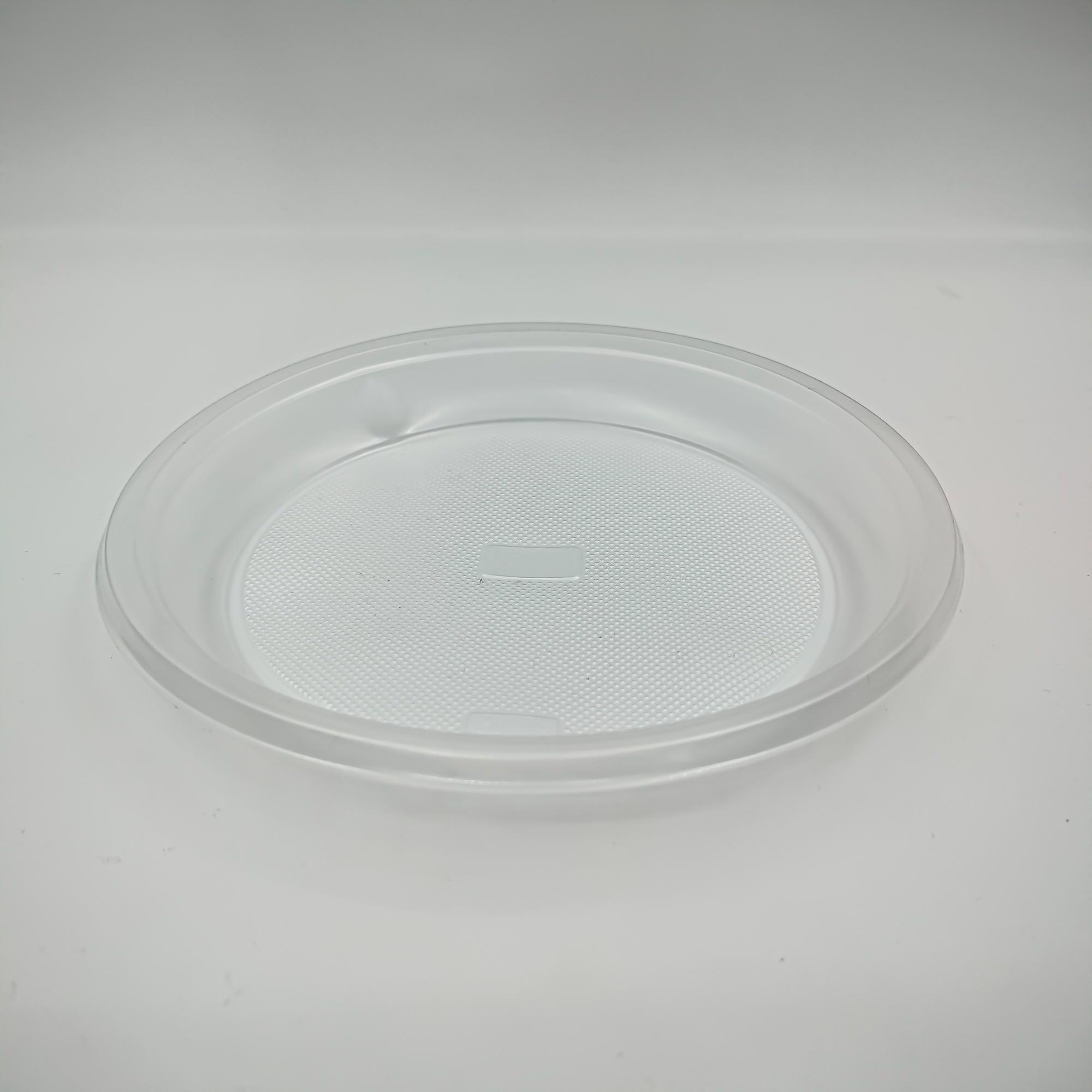 Тарелка десертная прозрачная диаметром 165 мм. Тарелка подойдет для горячих и холодных продуктов, может использоваться в микроволновой печи. Материал тарелки безопасен для здоровья. Подойдет для предприятий общепита, мероприятий на природе, офисов. В упаковке 100 тарелок.