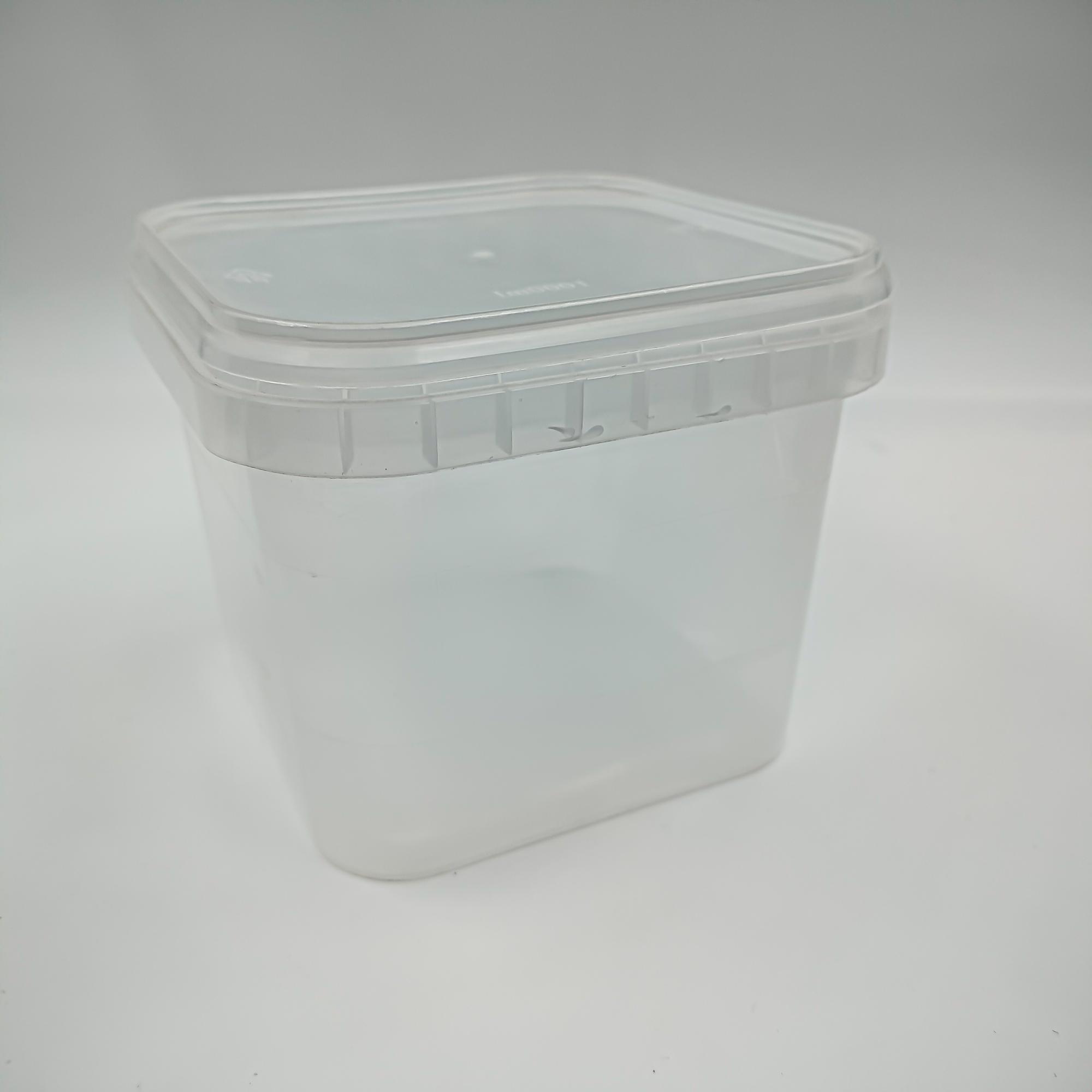 Ведро квадратное с крышкой (размеры верха - 125*125 мм, размер дна - 105*105 мм, h - 102 мм) объемом 1 л. Ведро пищевое пластиковое - универсальная посуда, удобная не только для сферы услуг, но и для частного использования дома. Отлично подходит для хранения бакалеи, консерваций, специй, готовых блюд, упаковки мороженого, ягод, порционного маринованного шашлыка. Ведро пластиковое оснащено короной жесткости, имеет пломбу для контроля вскрытия, в комплекте идет полипропиленовая гладкая крышка. Крышка у этих контейнеров закрывается плотно и герметично, это позволяет наливать жидкости и супы и безопасно хранить и перевозить.