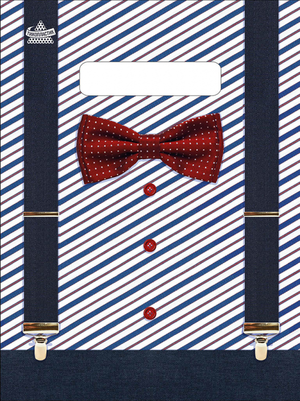Пакет из ПВД "Костюмчик" с вырубной ручкой, размеры: 190*250*0,03. Красочные потребительские пакеты с готовым дизайном пользуются спросом в различных сетевых магазинах и розничных точках продаж. Их вы можете встретить, как в магазине у дома, так и в крупном торговом центре, а также в дорогом бутике по продаже элитной мужской или женской одежды. В одной упаковке 100 пакетов