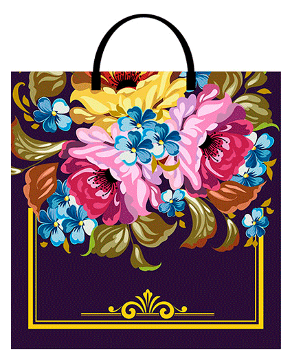 Пакет из ПВД "Жостовские цветы" с пластиковой ручкой, размеры: 350*360*0,085. Красочные потребительские пакеты с готовым дизайном пользуются спросом в различных сетевых магазинах и розничных точках продаж. Их вы можете встретить, как в магазине у дома, так и в крупном торговом центре, а также в дорогом бутике по продаже элитной мужской или женской одежды. В упаковке 10 пакетов