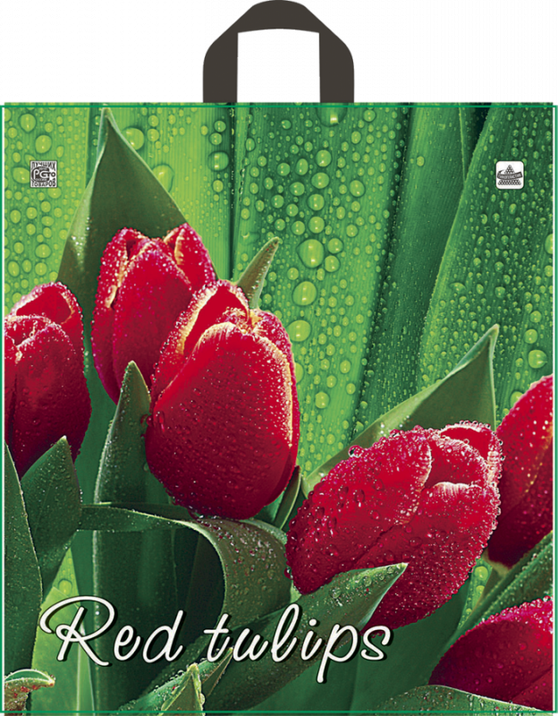 Пакет из ПВД "Красный тюльпан" с петлевой ручкой, размеры: 435*400*0,035. Красочные потребительские пакеты с готовым дизайном пользуются спросом в различных сетевых магазинах и розничных точках продаж. Их вы можете встретить, как в магазине у дома, так и в крупном торговом центре, а также в дорогом бутике по продаже элитной мужской или женской одежды. В одной упаковке 50 пакетов