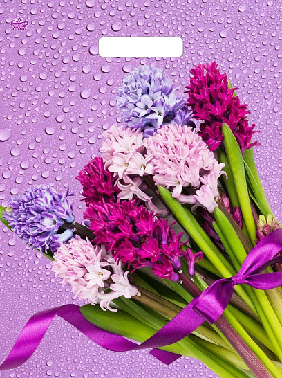 Пакет ламинированный "Нежные гиацинты" с вырубной ручкой, размеры: 400*310*0,06. Красочные потребительские пакеты с готовым дизайном пользуются спросом в различных сетевых магазинах и розничных точках продаж. Их вы можете встретить, как в магазине у дома, так и в крупном торговом центре, а также в дорогом бутике по продаже элитной мужской или женской одежды. В одной упаковке 50 пакетов
