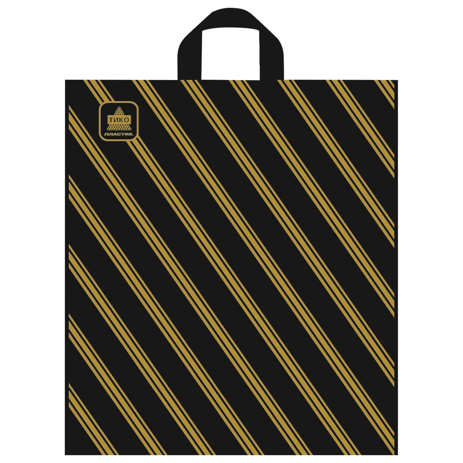 Пакет из ПНД "Золотая полоса" с петлевой ручкой, размеры: 440*400*0,043. Красочные потребительские пакеты с готовым дизайном пользуются спросом в различных сетевых магазинах и розничных точках продаж. Их вы можете встретить, как в магазине у дома, так и в крупном торговом центре, а также в дорогом бутике по продаже элитной мужской или женской одежды. В одной упаковке 50 пакетов