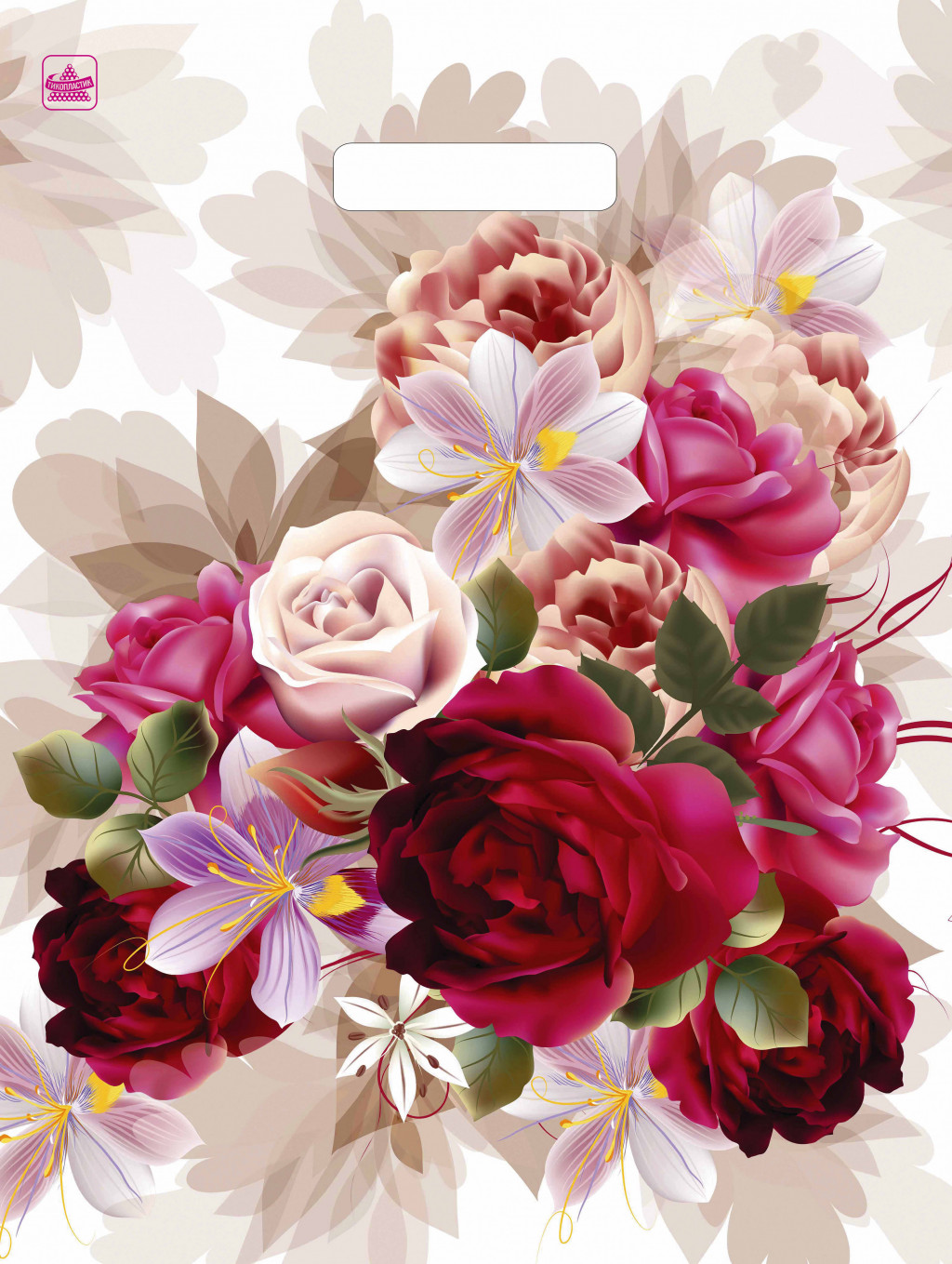 Пакет из ПВД "Пионы на бежевом" с вырубной ручкой, размеры: 400*310*0,06. Красочные потребительские пакеты с готовым дизайном пользуются спросом в различных сетевых магазинах и розничных точках продаж. Их вы можете встретить, как в магазине у дома, так и в крупном торговом центре, а также в дорогом бутике по продаже элитной мужской или женской одежды. В одной упаковке 50 пакетов
