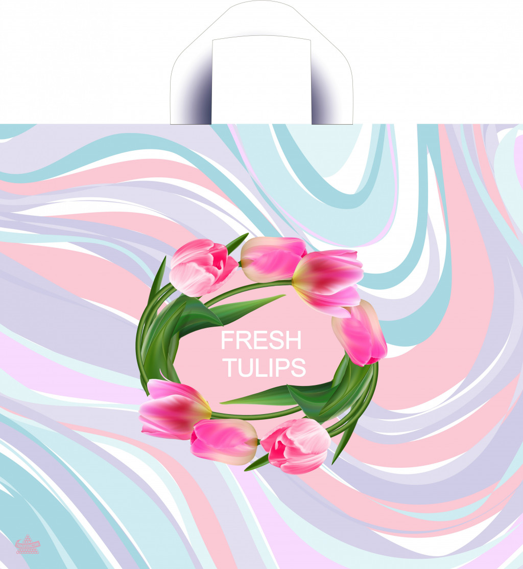 Пакет из ПВД "Круговорот цветов" с петлевой ручкой, размеры: 340*400*0,07. Красочные потребительские пакеты с готовым дизайном пользуются спросом в различных сетевых магазинах и розничных точках продаж. Их вы можете встретить, как в магазине у дома, так и в крупном торговом центре, а также в дорогом бутике по продаже элитной мужской или женской одежды. В одной упаковке 50 пакетов